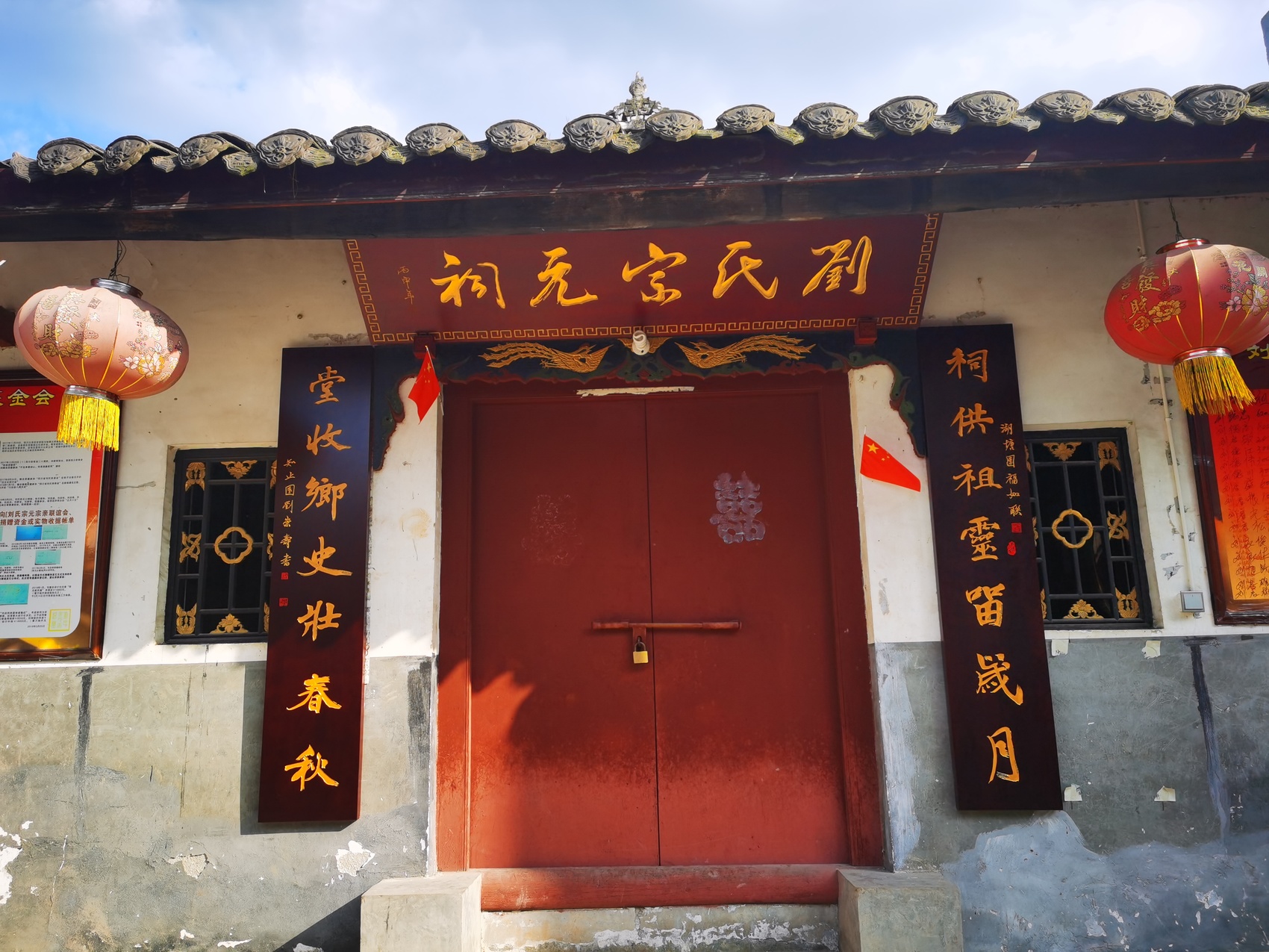 在两座民居之间,是一条20多米青砖铺就的巷道,站在巷口就能看到刘氏宗元祠的正门。檐上挂着的两个褪色红灯笼,与古老的祠堂一起诉说着岁月的沧桑。