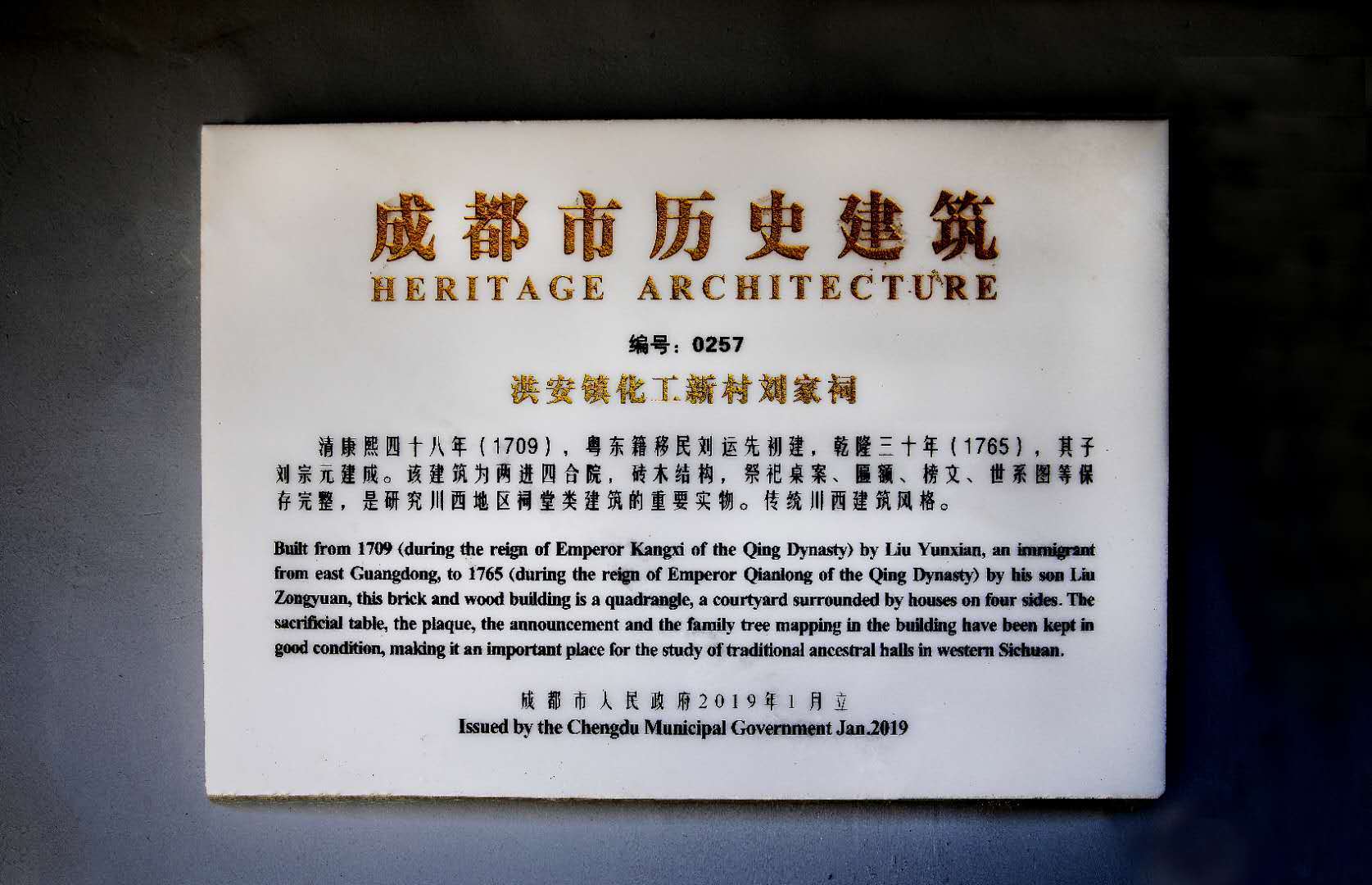 2019年1月,刘氏宗元祠被列入“成都市第十二批历史建筑保护”名录。受访者供图