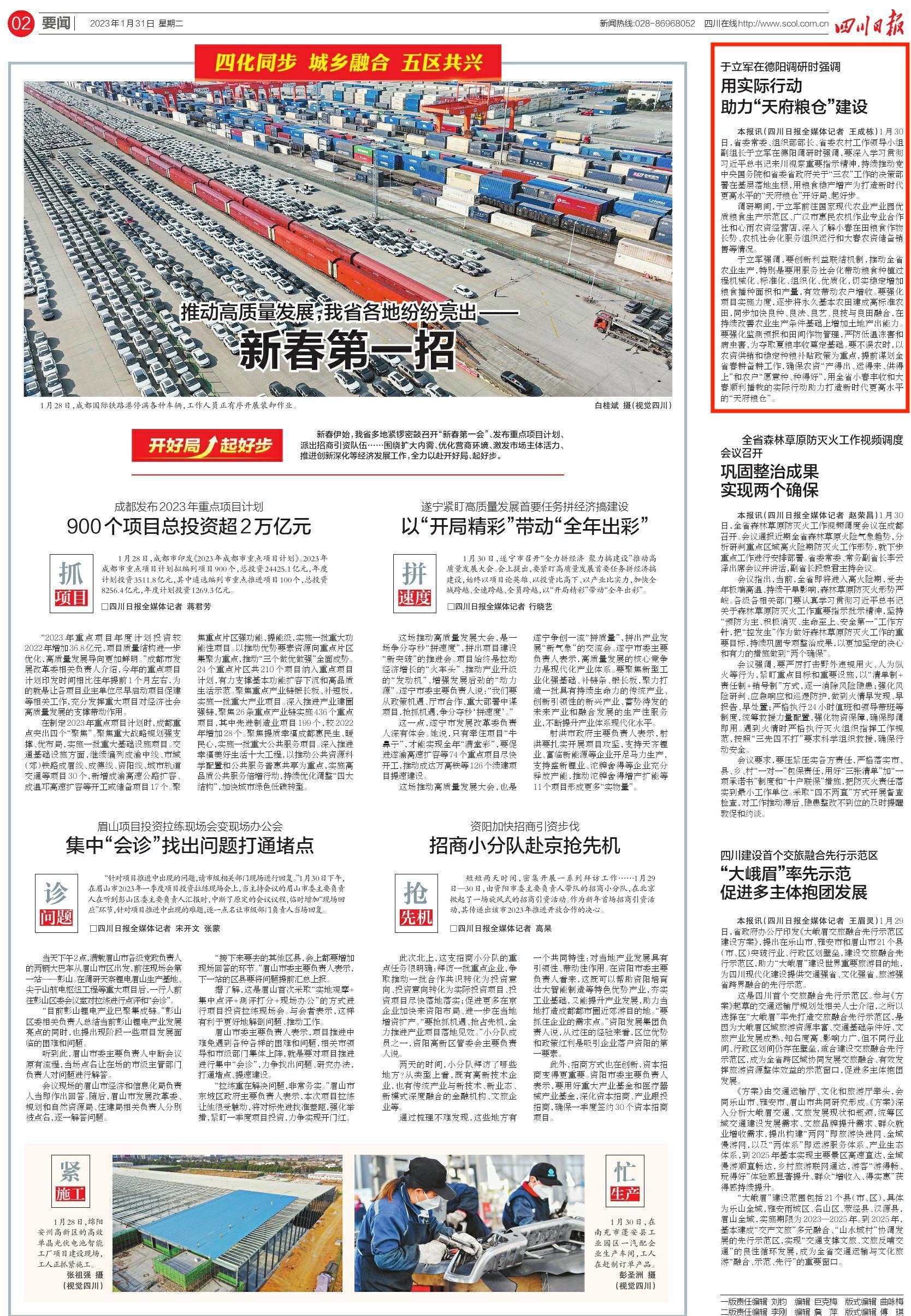 四川日报02版《于立军在德阳调研时强调 用实际行动助力“天府粮仓”建设》