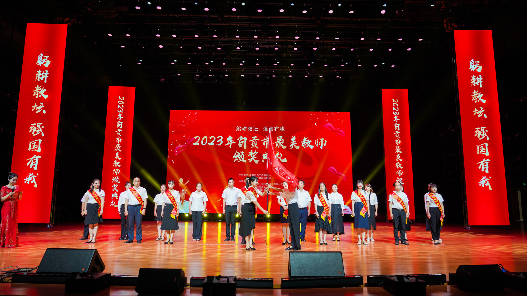 为集中展示全市广大教师的精神风貌,营造浓厚尊师氛围,讲好师德故事,带动感召广大教师学习优秀教师的事迹和精神,9月7日,“躬耕教坛 强国有我”2023年自贡市“最美教师”颁奖典礼在四川轻化工大学李白河校区举行。