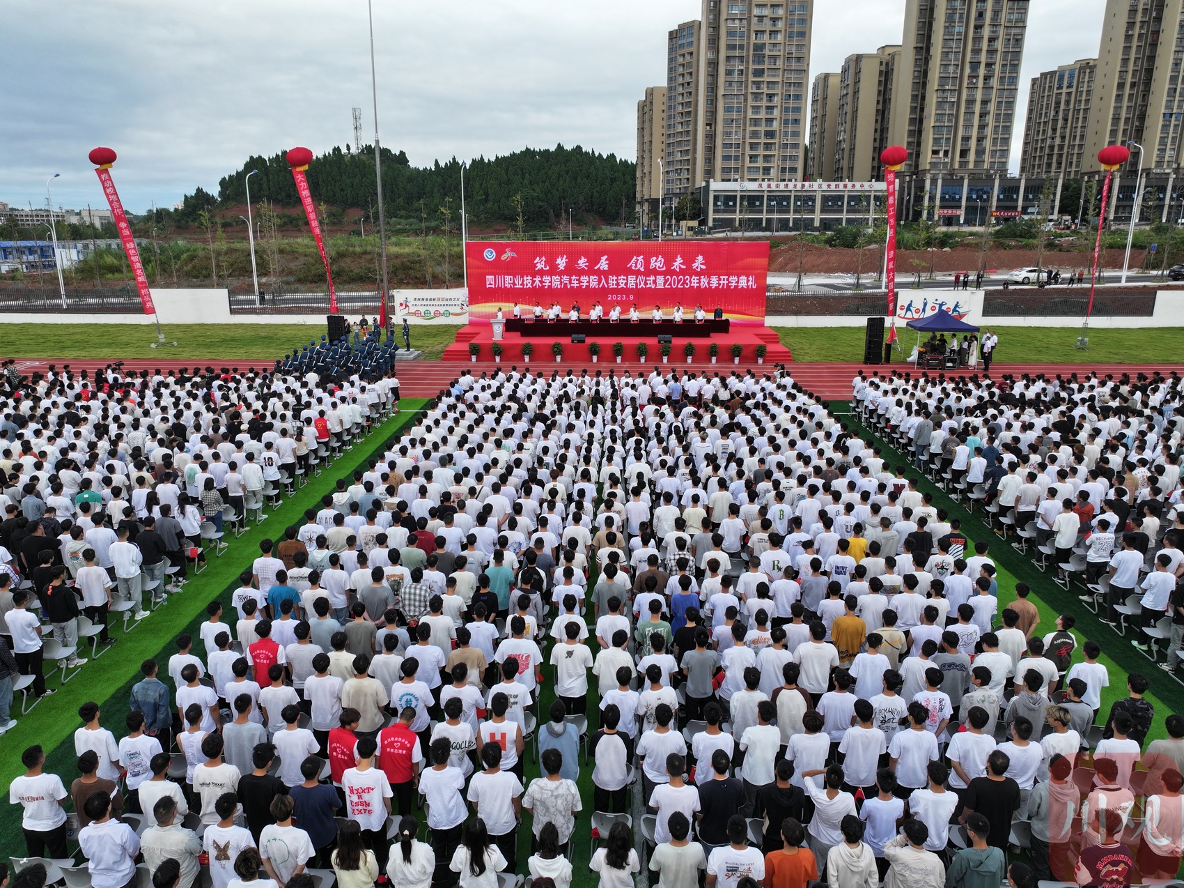 9月21日,四川职业技术学院汽车学院入驻安居仪式暨2023年秋季开学典礼在遂宁市安居区举行,1800余名师生入驻新校区。