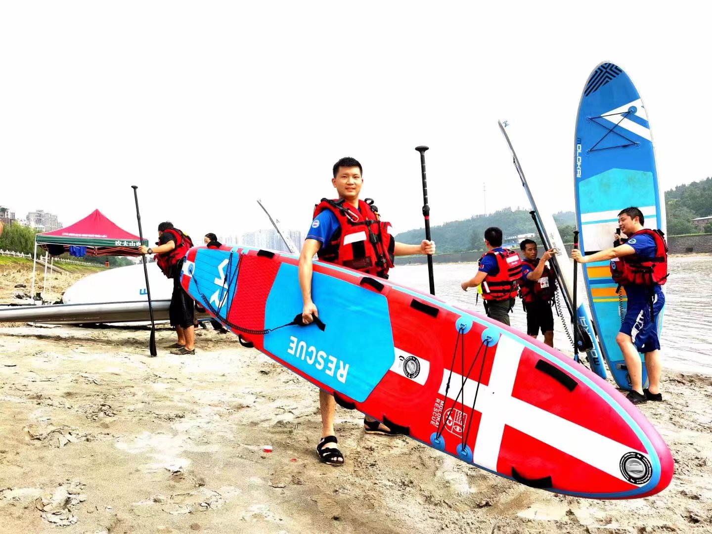 出于医务人员和应急救援队员的职业本能,汪跃第一时间用浆板载着女儿快速地划了过去,发现河里的遇险者已经快没有力气了,他立即将自己的救生衣脱下扔给他,可遇险者已经没力气拿救生衣了并一直往下沉。汪跃意识到情况紧急,立即跳入水中把遇险者托起并拉到桨板边上,在女儿的协助下一起划着桨板把遇险者安全带到了岸边。