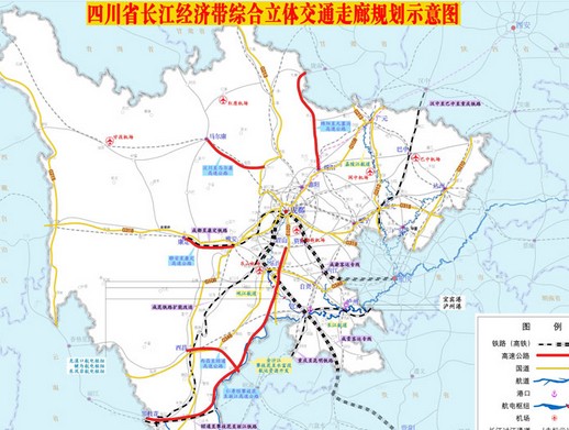 11月,四川省政府印发《贯彻国务院关于依托黄金水道推动长江经济带发展指导意见的实施意见》和《四川省推进实施长江经济带综合立体交通走廊规划工作方案》,提出从6个层面推进长江经济带发展。其中,交通方面,四川将建设7个铁路项目、9个公路项目、6个民航项目。