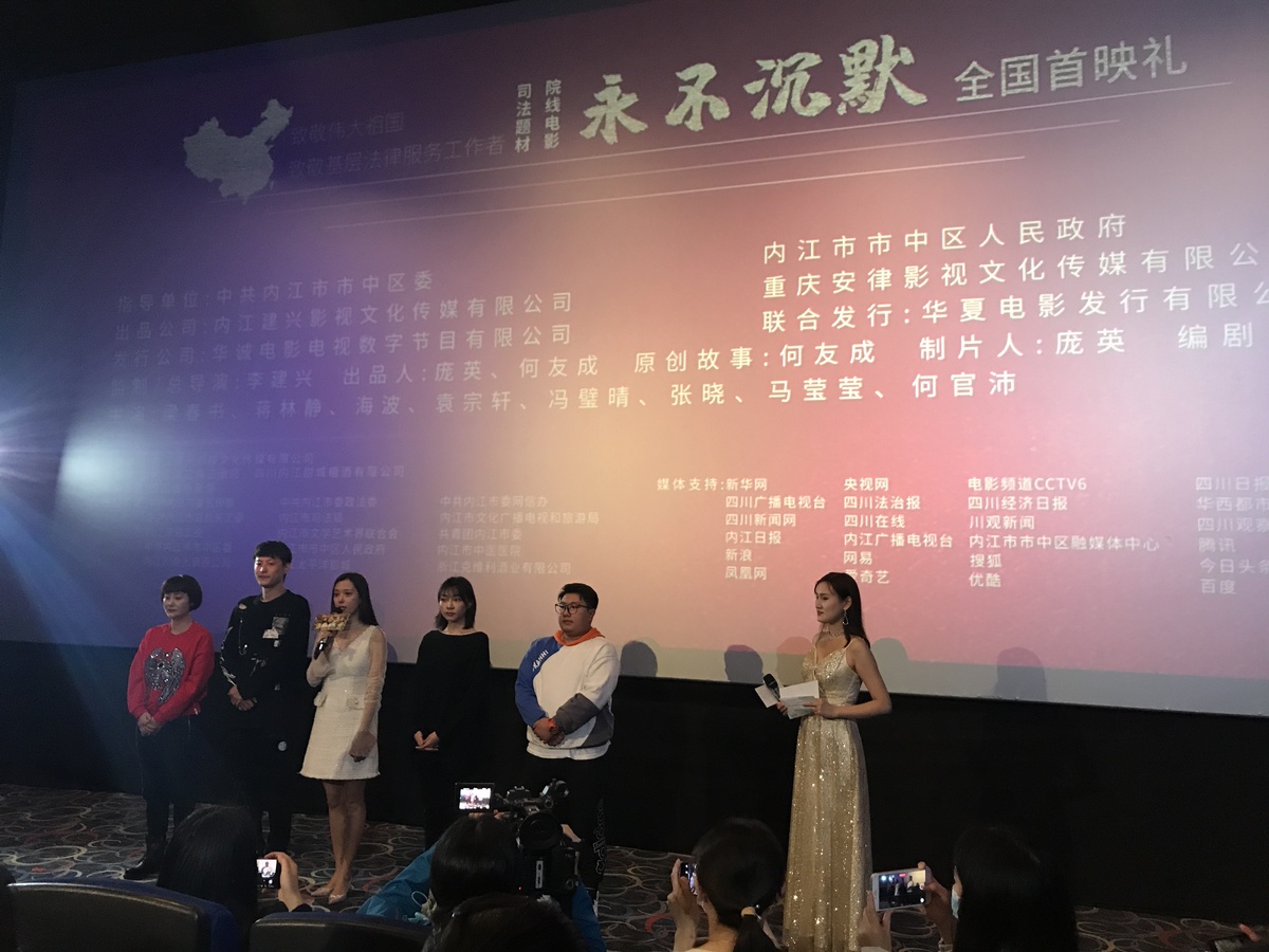 “这是全国第一部宣传基层法律服务工作者的司法题材电影,影片以川渝两地基层法律服务工作者为原型,艺术展现了一群有知识、懂法律并扎根基层的法律服务工作者淡泊名利、甘于奉献的高尚情操。”制片人庞英说,《永不沉默》是她返乡创业回到故乡拍摄制作的第一部院线电影。