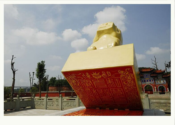 观音珠宝印作为广德寺的镇寺之宝,观音珠宝印的印柄也包含了丰富的含义,它作狮子状。在佛教中,狮子有着崇高的地位,代表法力。在佛教经典中,识佛为人中狮子, 称佛说法为狮子吼,以佛的座为狮子座。此印作为国家一级文物,游客很难一见。为了让更多的游客生动直观地了解广德寺悠久的历史文化,广德旅游风景区采用高仿真材料,把观音珠宝印按实际比例放大26900倍制成了一道崭新的景观——“一印天下”,此景就位于广德寺前莲花广场的正中央。