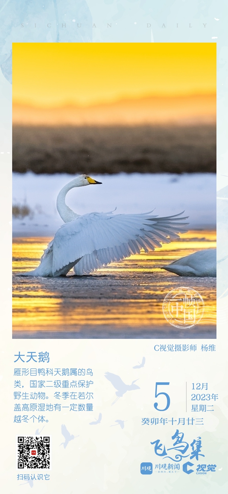 有一定数量的大天鹅每年冬天从蒙古国北部迁徙到若尔盖高原湿地越冬。