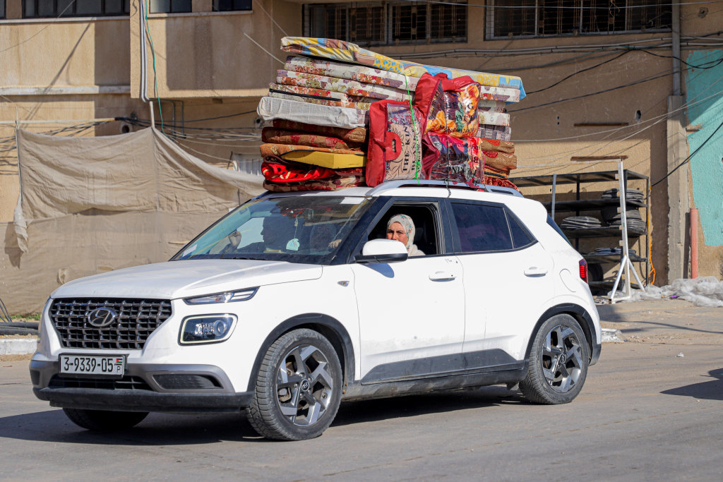 12月3日,在加沙地带南部城市汗尤尼斯,人们收到以色列撤离通知后逃离家园。