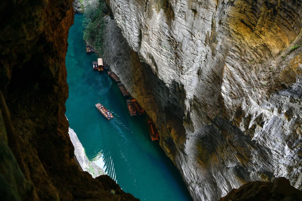 位于湖北省恩施土家族苗族自治州鹤峰县容美镇的屏山峡谷,绝壁耸峙,碧水潺潺,“一线天”景观绵延十几公里,形成罕见的峡谷景观。此处碧水、轻舟与绝壁、森林相映成趣,每年吸引众多游客前来观光。