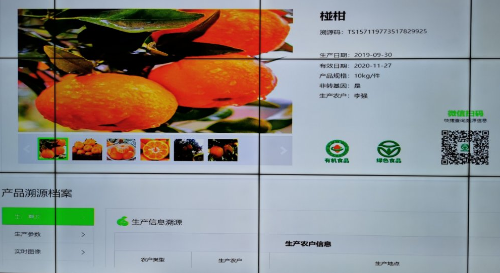 智慧果园系统随时记录园区内柑橘的“成长日记”,按地块进行溯源,生产过程中用过的肥料、农药等都要记录下来,消费者扫描二维码就可以看到果品的整个生长过程,拥有“身份证”将成为青神柑橘打入高端市场的敲门砖,实现更高的商品价值。