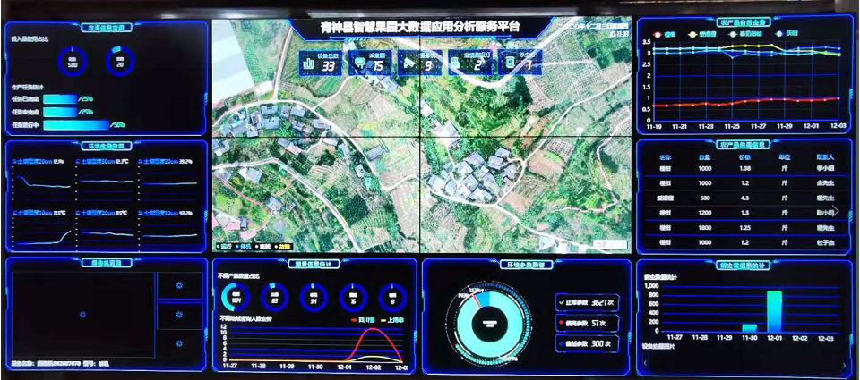 该智慧果园项目位于青神现代农业园区,有500亩左右的果园试验区。整个智慧果园系统包括综合应用大数据、物联网、云计算等现代信息技术,科学配置,采用了“1+1+1+N”的模式,即一个智慧果园综合信息服务平台、一个智慧果园大数据应用分析、一个指挥控制中心以及N个子系统,实现一个平台,多种应用,为果园里的每一颗果树提供采前、采中、采后的全方位监测和指导。