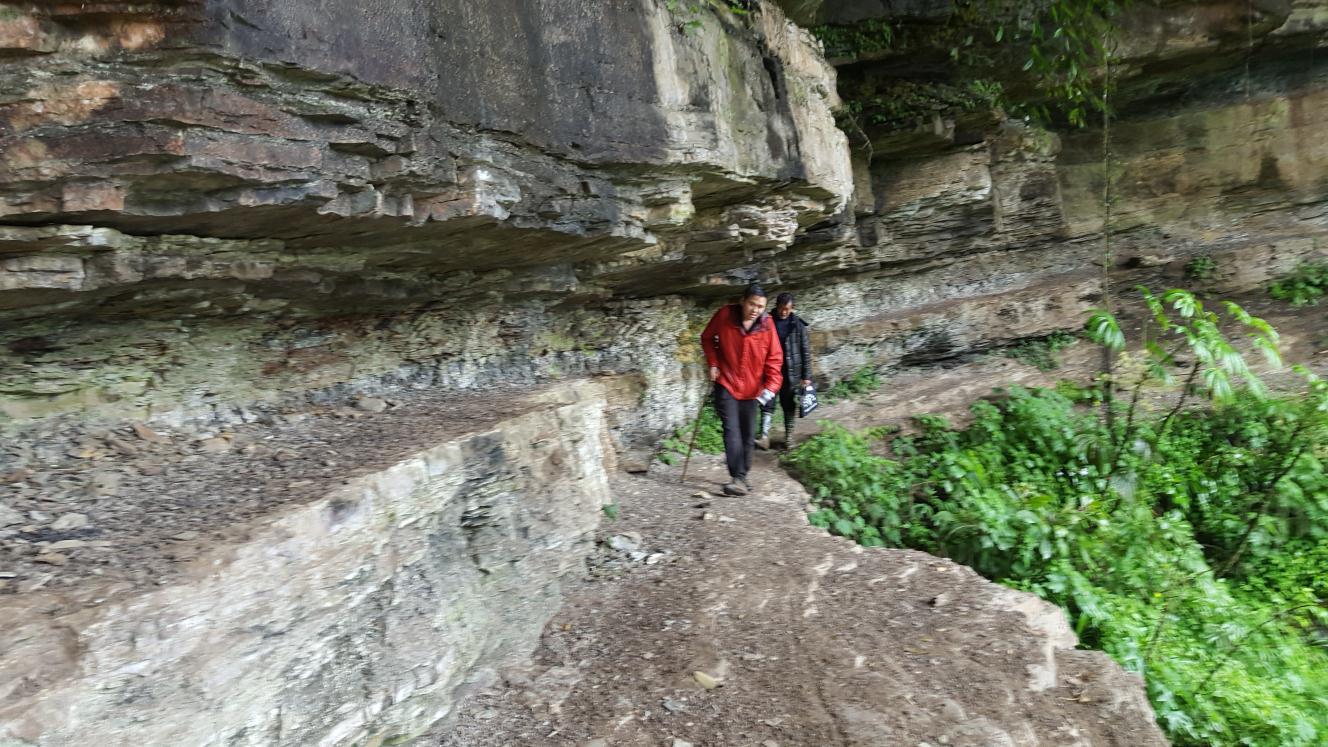 这时候,他就唱歌。与其说是唱,不如说是吼,声嘶力竭,不在于表达情感,更多是壮胆,排解孤独。累了,找块石头坐会,渴了,鞠一捧山泉。偶尔发现一堆猴子粪便,便站在崖边远眺,捕捉枝头猴子跳跃的身形,成为难得的乐趣。