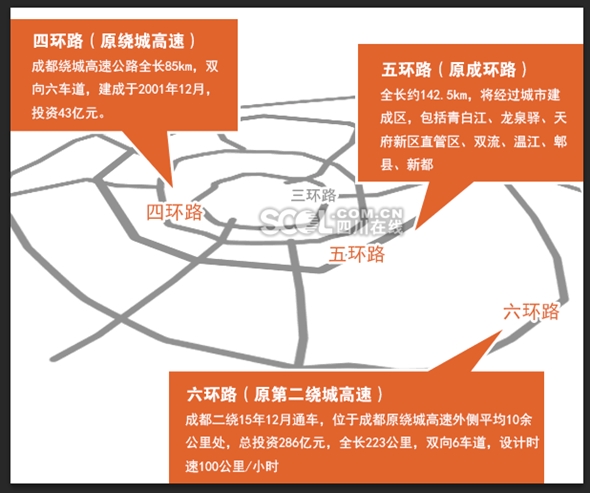 “以北京为例,他们的环线是在高速名称后面括号加注环路名称,如京开高速(南四环)。”成都市民政局相关负责人表示,四、五、六环将分别分成东南西北四段,途径区域除了成都各个区县市,还包含德阳的广汉市。