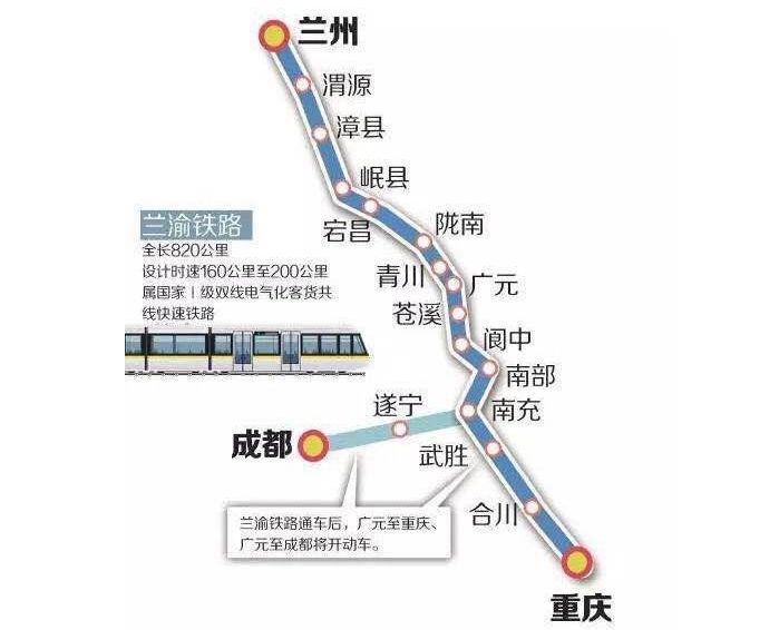 从2014年起,兰渝铁路分段建成开通,本月29日将实现全线开通运营。其中,广元至重庆段开行动车组,最高时速200公里,并结束了省内苍溪、阆中、南部不通铁路的历史。重庆市民到广元剑门关、女皇故里等川北景区旅游,从过去经由成都站转乘宝成铁路旅客列车的出行模式,简化为在重庆北站坐上经南充到广元的直达旅客列车,铁路旅行时间也从过去至少8小时压缩为4小时左右。