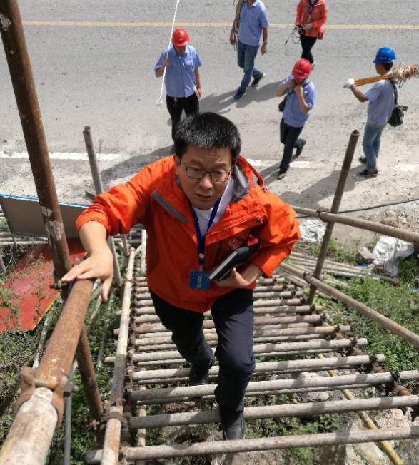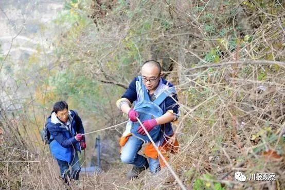四川日报记者张守帅(前)、何勤华在去悬崖村采访的路上。