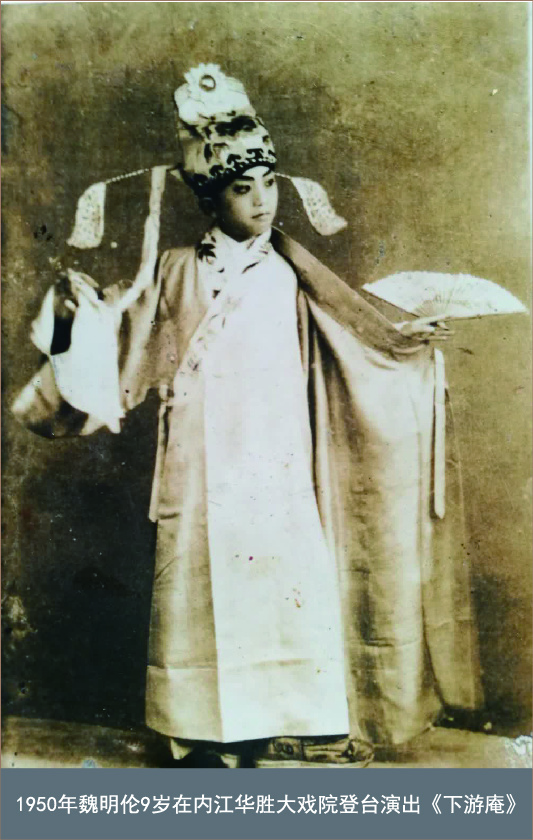 但令人惊讶的是,能写出众多深厚积淀、推陈出新作品的魏明伦,小学三年级后就再也没上过学,以后也没有深造的机会。如今这位老人不会乘法,只会加减法,提起数字就有些头疼,“并不是我选择了川剧,而是我别无选择,川剧选择了我。”魏明伦回忆,童年时家里有10多口人,他上面有哥哥姐姐,下面有还有两个妹妹,为了谋生养家,他过早失去了“童年”,9岁登台唱戏。“这个娃娃好乖哦。”“唱得好好哦。”当时不少戏迷赞叹。只要有他登台,剧场的观众都会多上一两成。这位“童星”在剧班的收入名列前茅。但很快,14岁的他开始“倒嗓”(嗓音变哑,不能发出圆润的声音),沙哑无法恢复,这对于一位戏曲演员的打击是致命的,红极一时的他逐渐被戏迷们遗忘,小小年纪就品尝到了世态炎凉的滋味。