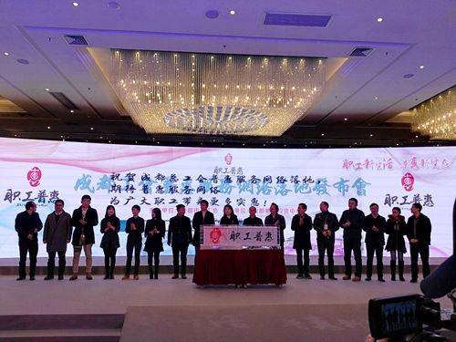 会上发布了成都工会普惠服务网络品牌,举行了成都工会普惠首批战略合作商家签约仪式、媒体助力成都工会普惠服务仪式、《成都职工普惠服务网络战略协议》签约仪式。成都市总工会、各区市县工会领导参加了活动,通威集团、成都新希望集团、四川航空、中国银行、万达体育、钟书阁等来自全市各领域的20多家大型商家代表,相关媒体代表出席了成都职工普惠服务网络落地发布会。