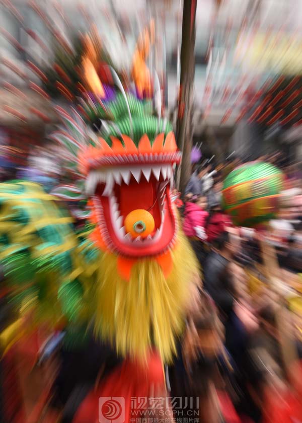 2月11日,已有500余年传承历史的“鱼凫彩龙”庆元宵。