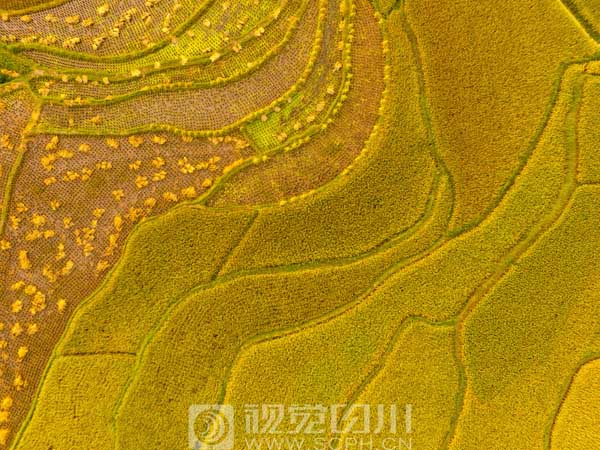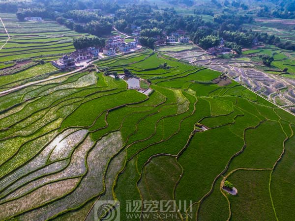 4月12日,叙永镇红岩村的万亩梯田勾勒描绘出大地迷人的曲线。