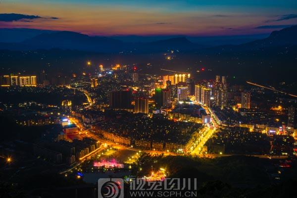 6月27日傍晚,在晚霞掩映下,叙永县华灯初上,流光焕彩。