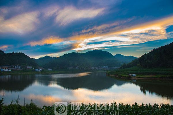 7月15日,麻城镇晚霞宛如美丽画卷。