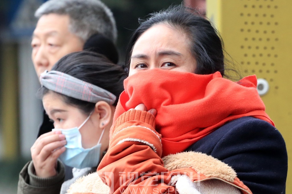 2018年1月3日,成都市降温,街头市民穿上厚冬装。衡昌辉 摄
