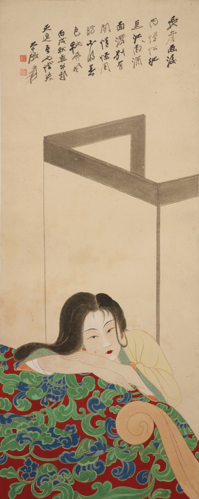 魏学峰说,敦煌之行对张大千产生的一大影响便是作品要有大气象。因此敦煌归来以后,张大千开始了大画创作,其中长约20米的《长江万里图》便是其晚年的杰出代表。《拥衾仕女图》等仕女画,不仅人物从纤弱走向健美,敦煌藻井图等大量鲜艳的色彩和繁复图案,也用在了他的人物画中。