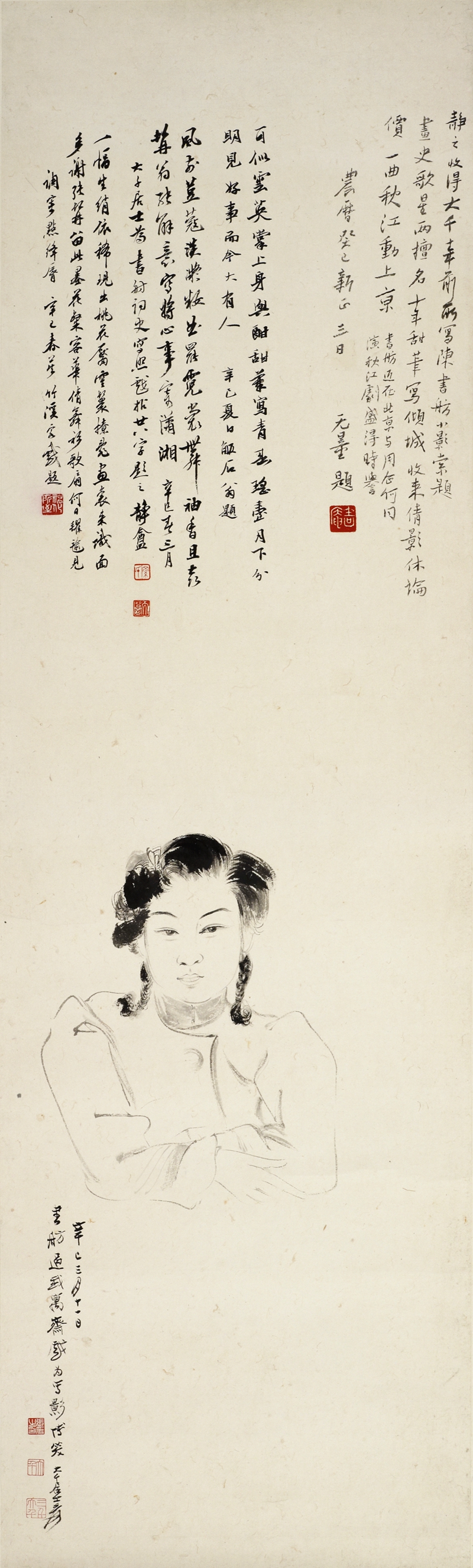 作画之外对戏剧也颇为喜爱的张大千,与京剧大师孟小冬、川剧名伶陈书舫等也相熟。1941年,他专门为陈书舫创作了一幅《为陈书舫写影图轴》,不仅亲笔绘画,还邀请谢无量等人题款。后来,陈书舫将这幅画作捐给了川博。