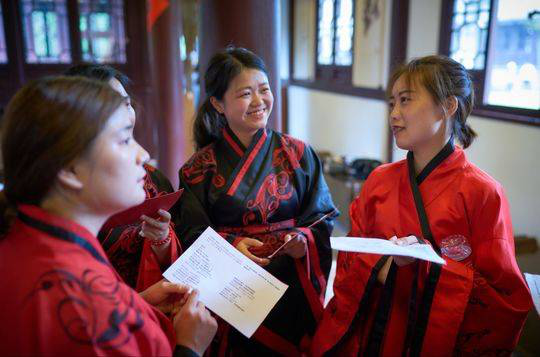 吟诵是传统汉诗文的吟唱诵读方式。在分享会现场,成都草堂吟诵社诗友用经典诗词吟诵的活态形式,“唱”响了李白的经典名篇《蜀道难》。“噫吁嚱,危乎高哉!蜀道之难,难于上青天!”随后,四川人民出版社的青年编辑们又以现代的朗诵方式又为大家演绎了一遍《蜀道难》。古今对照,不同的腔调,演绎出“诗仙”李白在蜀道上下求索的宏愿与幽思。