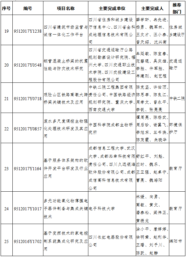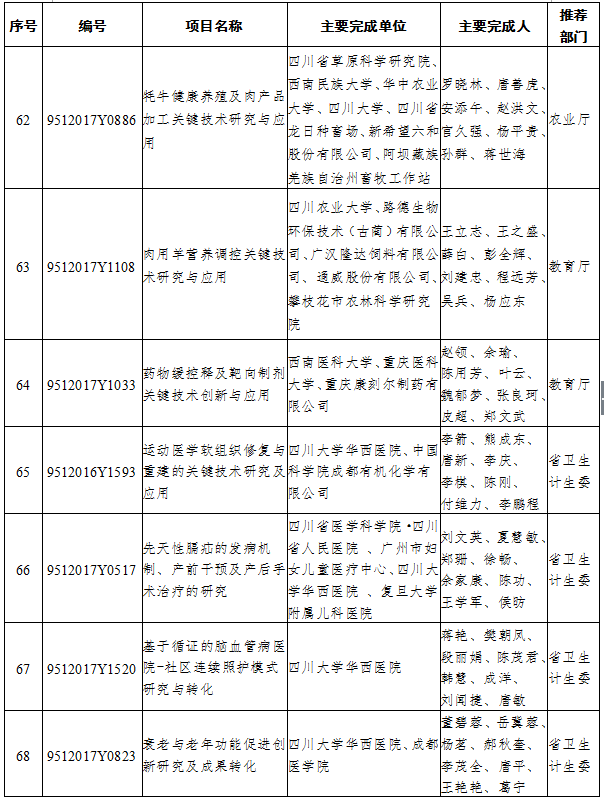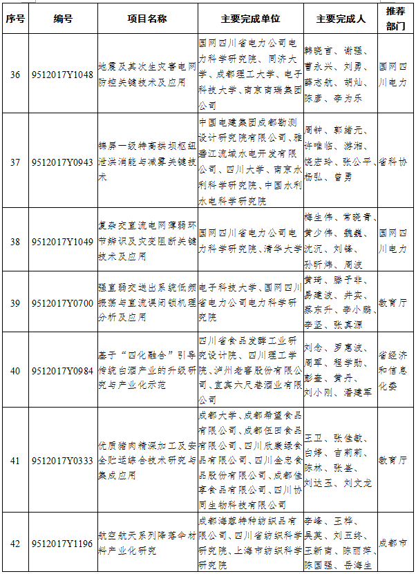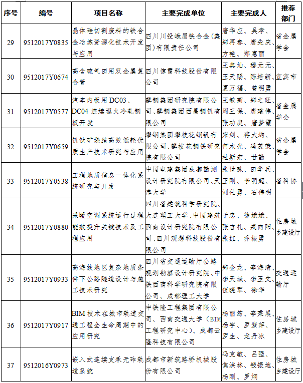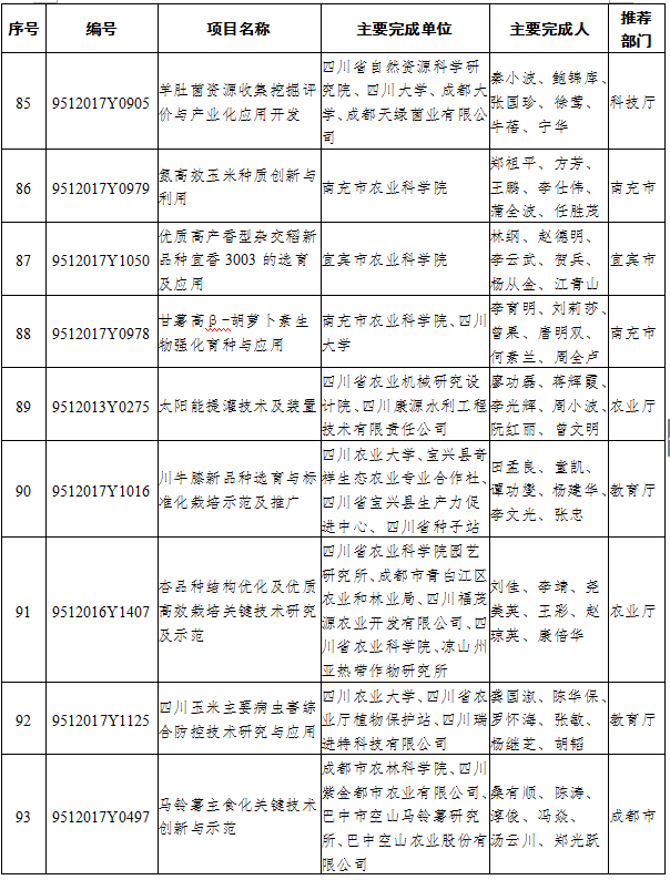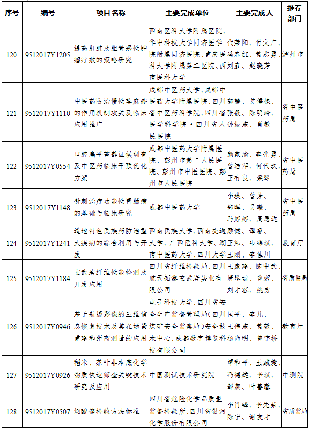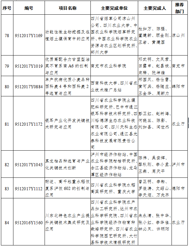 5月29日,记者从四川省政府网站获悉:根据《四川省科学技术奖励办法》,经省科学技术奖励评审委员会评审,省科学技术奖励委员会审定,省政府决定授予四川大学王玉忠教授四川省科技杰出贡献奖;授予“磁共振脑网络成像新方法及其对癫痫脑机制的研究”等31项成果四川省科技进步奖一等奖,授予“深部岩体工程特性测试技术及应用”等93项成果四川省科技进步奖二等奖,授予“FMS63柔性制造系统”等157项成果四川省科技进步奖三等奖。