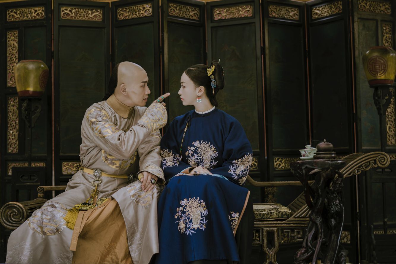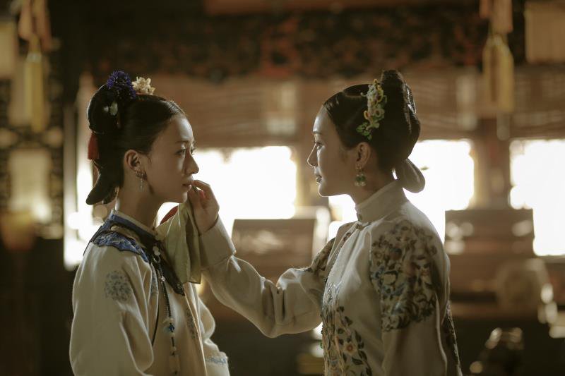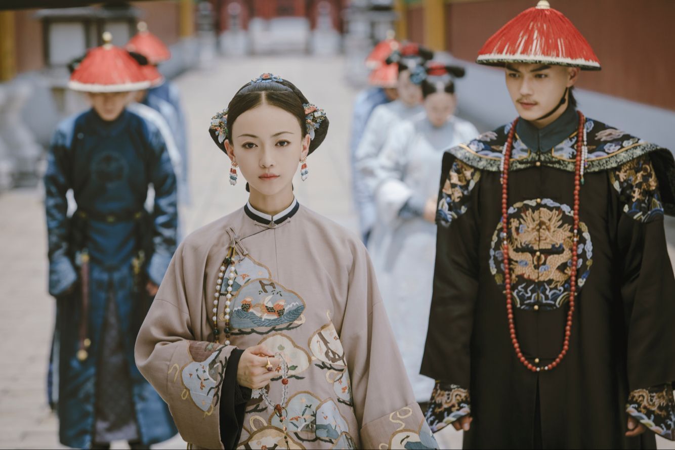 剧中人物其他装扮也按照史诗和旧例,采取乾隆年间的“小两把头”发型,还沿袭“原系满洲旧风、断不可已饰”的“一耳三钳”。嫔妃身份不同,佩戴的首饰也都各不相同,这一点在《延禧攻略》里都做到精准还原。