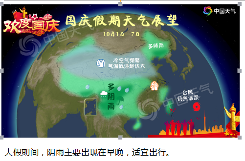 国庆期间出现强降水、强降温、强对流等灾害性天气的可能性比较小。