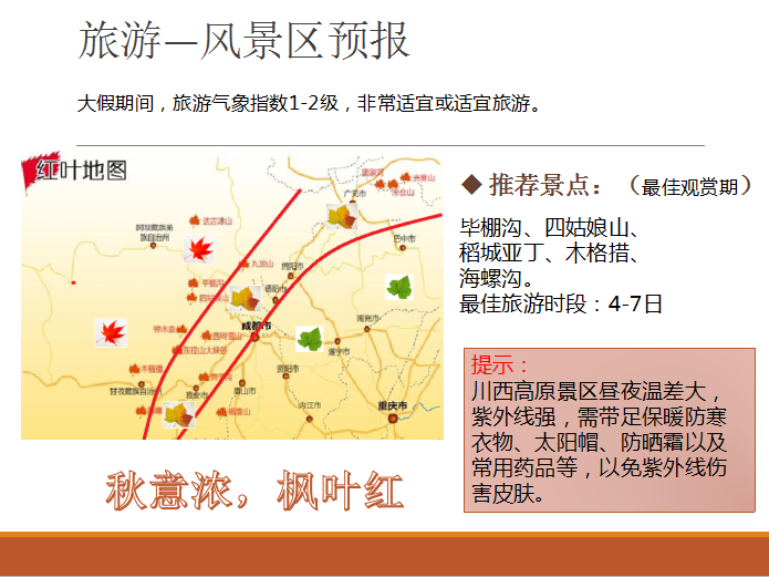 现在,就为您奉上四川省气象服务中心制作的国庆大假四川出行天气攻略,请接好~