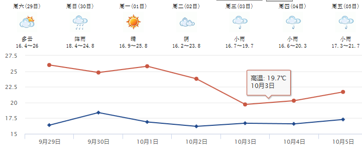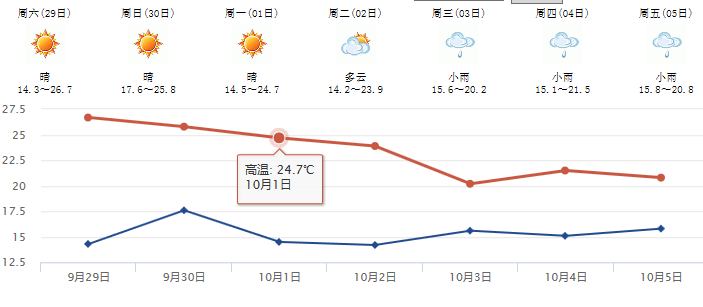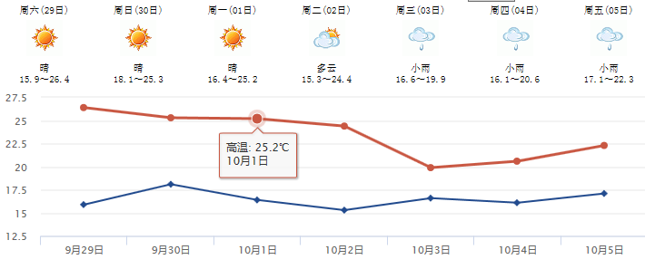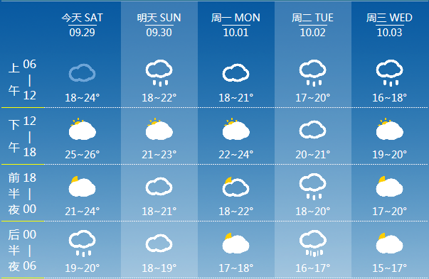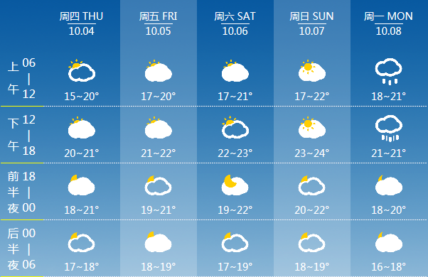 当天,各地方气象台也纷纷预报了国庆期间的天气状况: