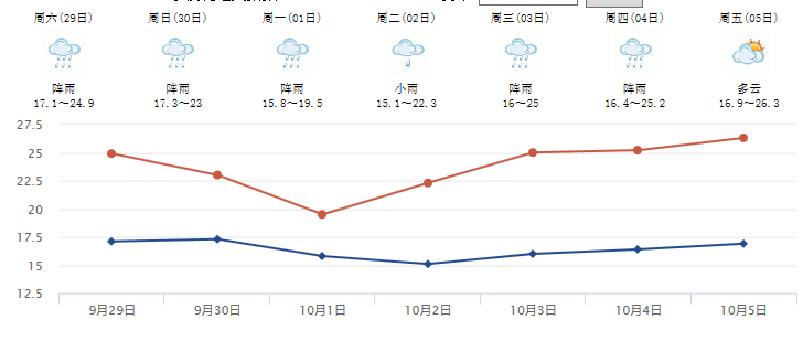 攀枝花:这里还处于夏末。国庆期间多降水,降水主要出现在1-4日夜间。最高温℃31-33℃,最低气温16-18℃。