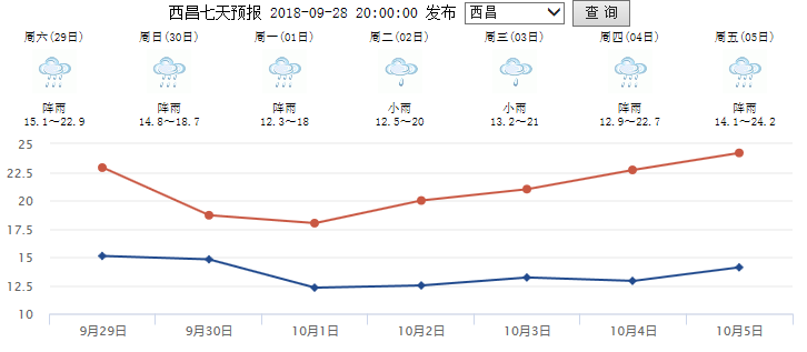 西昌市9月30日白天可能出现中雨,其余时段的降水主要出现在夜间。最高气温19-24℃。
