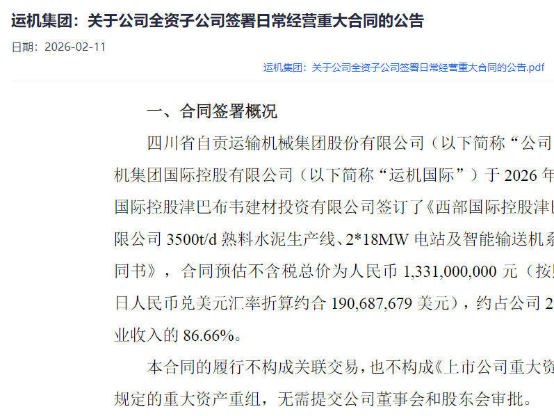 运机集团获13亿元海外大单 国际化战略迈入新阶段
