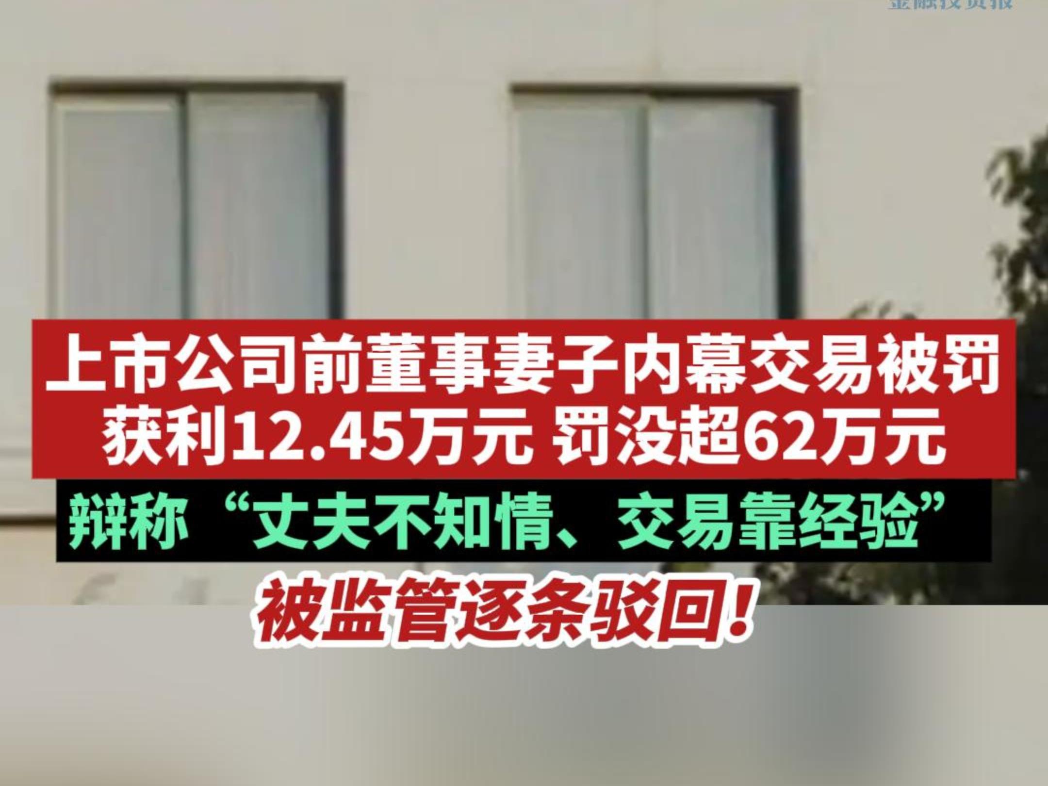 上市公司前董事妻子因内幕交易罚没超62万元!