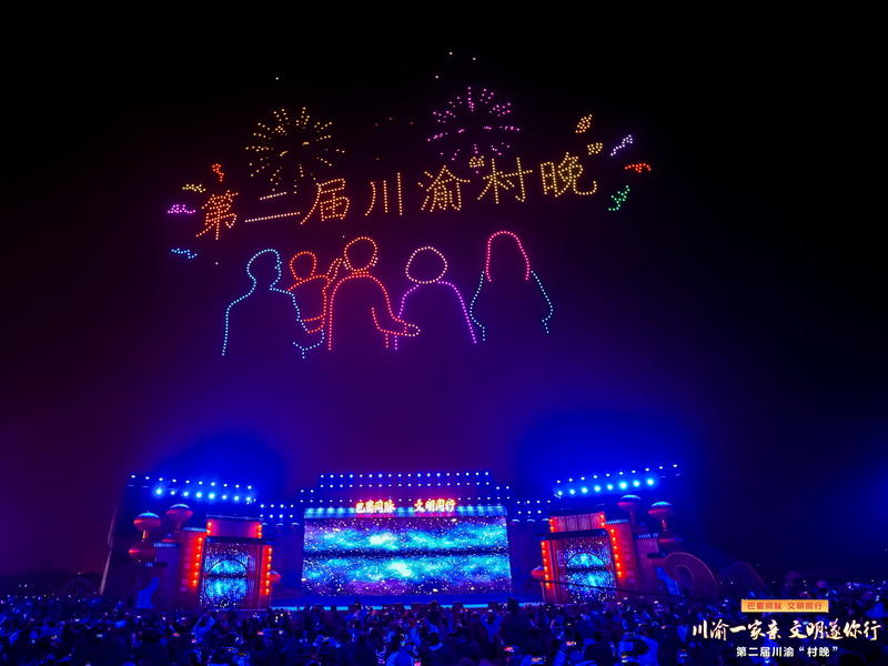 1300架无人机光影绘就川渝同心卷 第二届川渝“村晚”夜空绽放文明之花丨视频