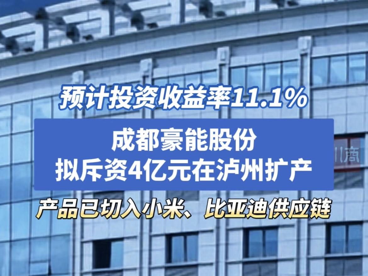 预计投资收益率11.1%,成都豪能股份拟斥资4亿元在泸州扩产!产品已切入小米、比亚迪供应链