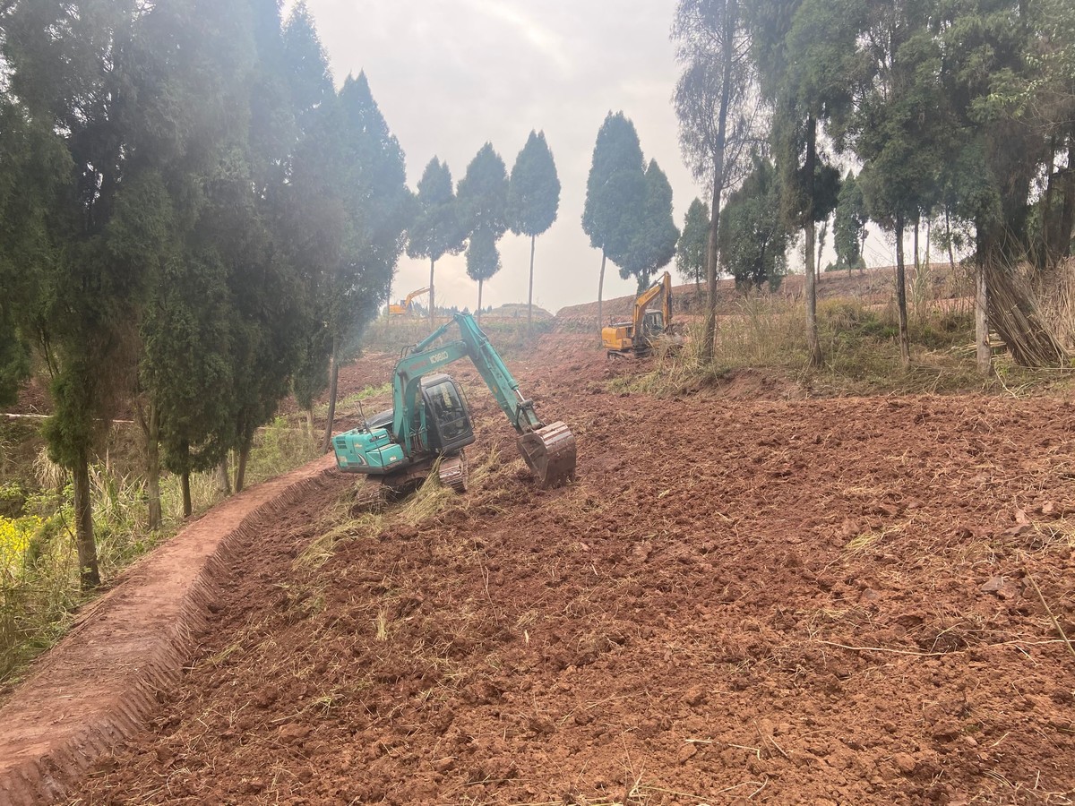 挖高、填平……3月11日,阳光明媚,资中县陈家镇玉皇观村 ,数台挖掘机来回运转,原有的陡坡很快被铲平,一块块齐整的梯田初见雏形。