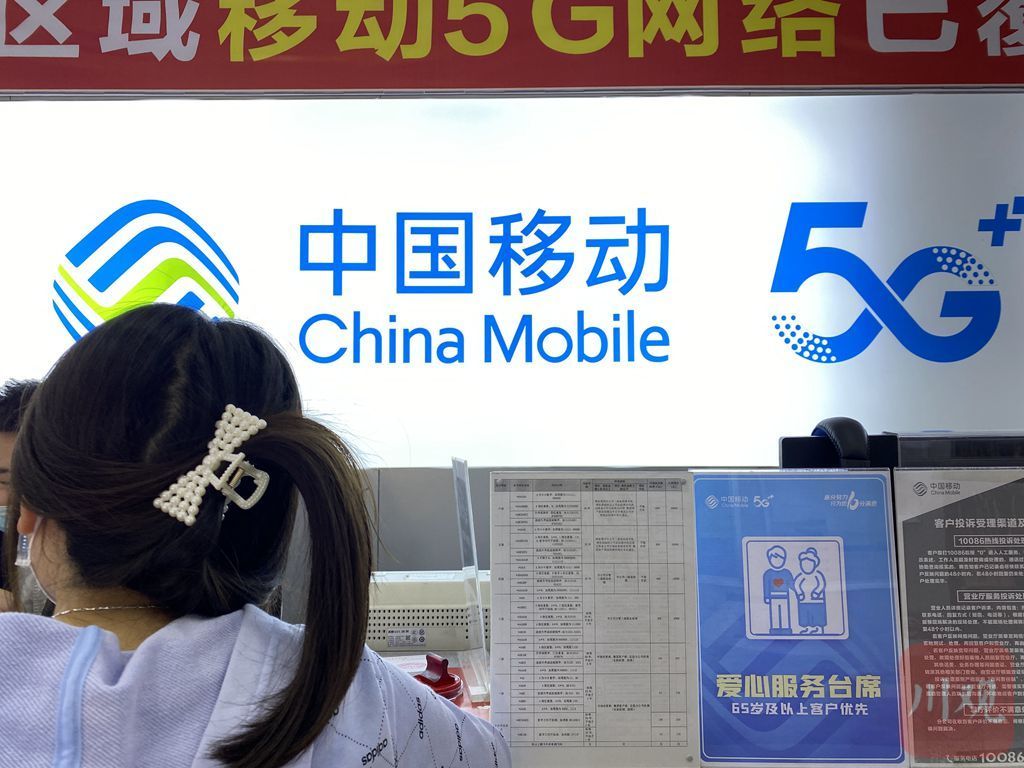 移动公司营业厅里,一名消费者正在了解“靓号”规则。唐子晴 摄