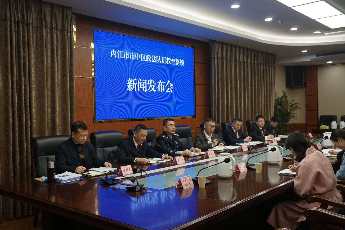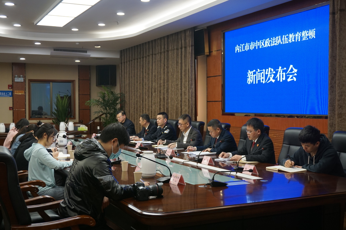 3月16日,内江市市中区召开政法队伍教育整顿新闻发布会,强化外力推动,让群众监督,由群众评判,营造开门搞教育整顿的浓厚氛围。