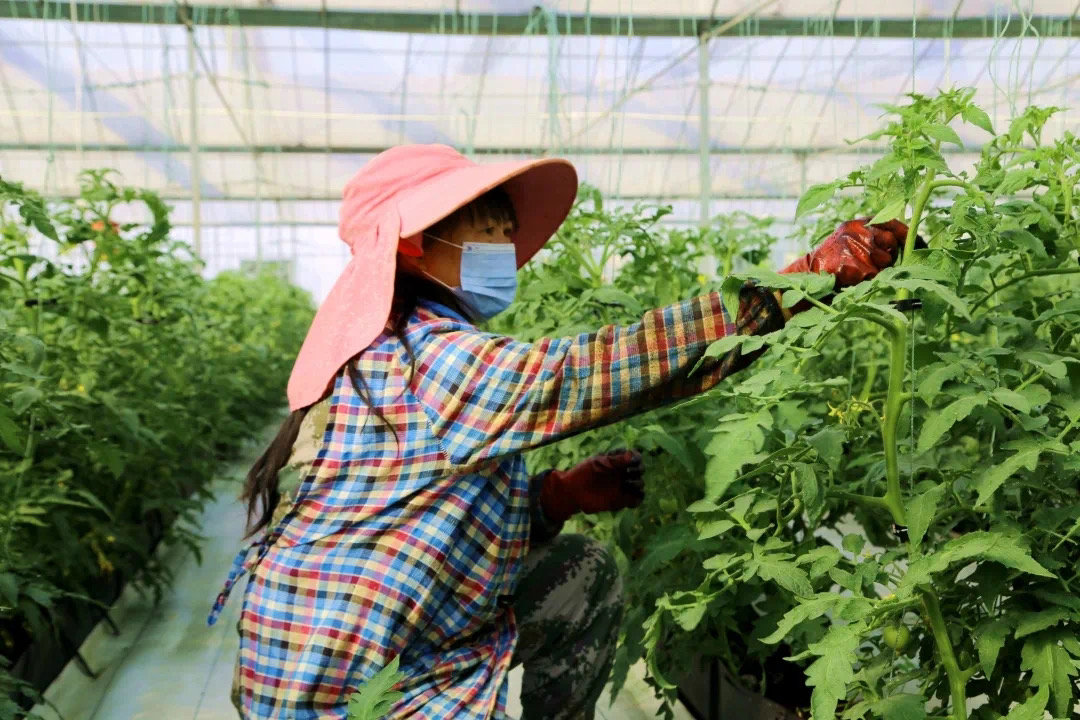 “以前是田间地头四季耕种,现在做起了产业工人天天上下班,在这里干活每个月有2400元,土地租金每亩一年还有1300元,算下来一年有3万多元的收入呢。”聊谈的几分钟里,倪永萍笑说,她在这里主要负责西瓜、番茄、草莓的种植、修枝、授粉和采摘。