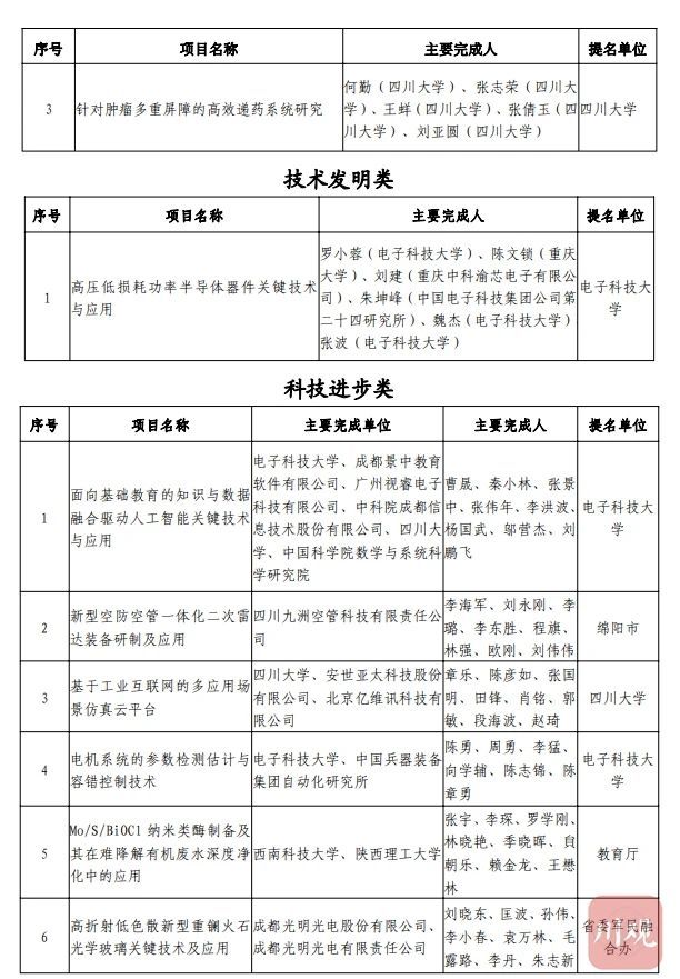 3月17日上午,四川省科学技术奖励大会在成都举行。会上公布了2020年度四川省科技进步奖获奖名单。