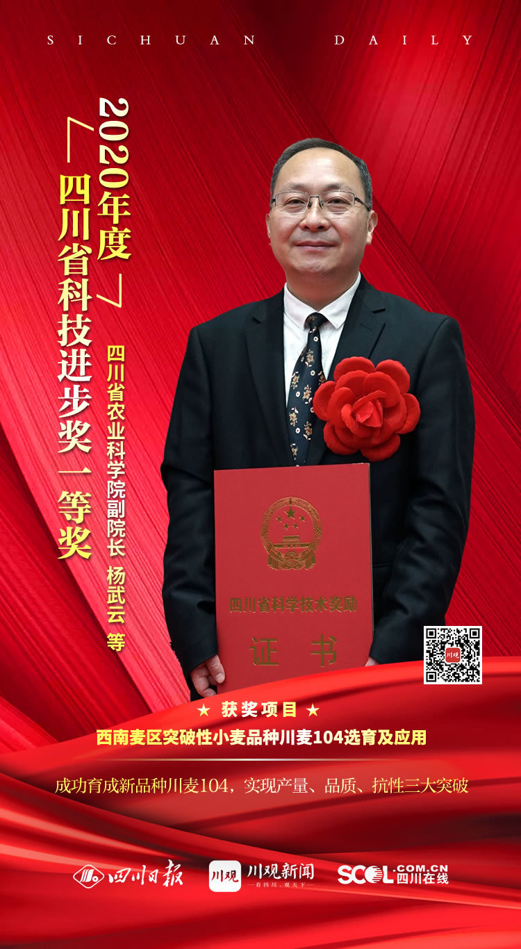 3月17日上午,2020年度四川省科技进步奖获奖名单出炉,四川省农业科学院作物研究所、四川农业大学、四川省农业科学院完成的“西南麦区突破性小麦品种川麦104选育及应用”获得2020年度四川省科技进步一等奖。