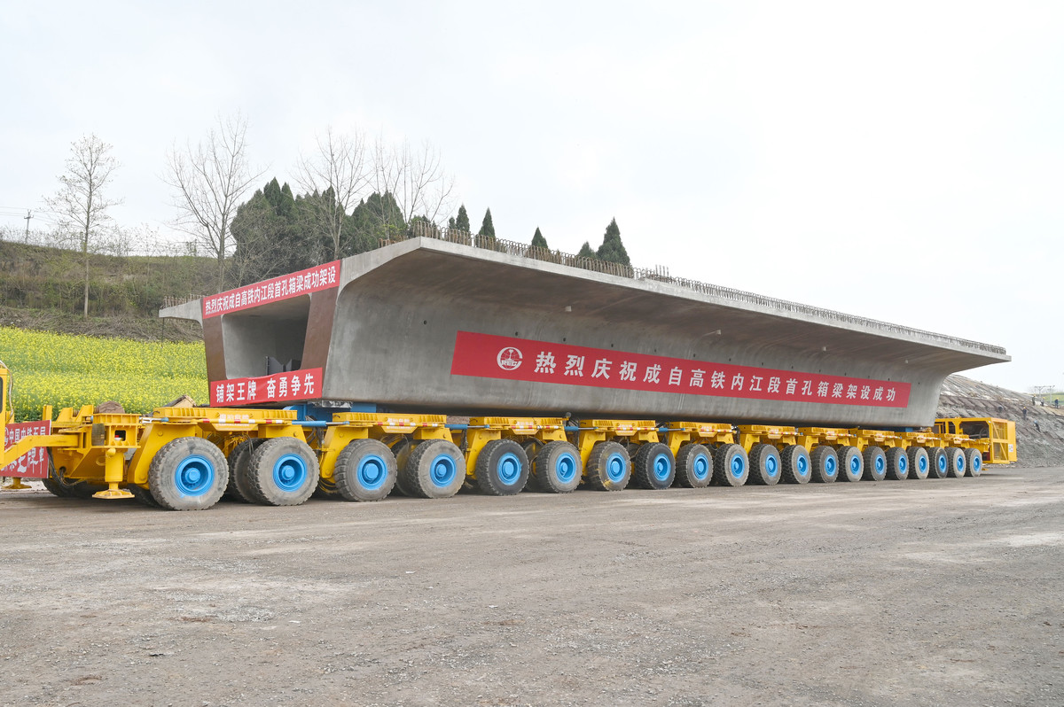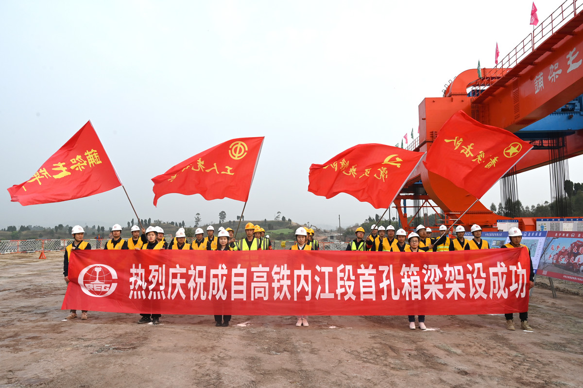 3月17日,随着中国中铁五局施工人员操作着JQ900A架桥机将第一孔预制箱梁架设在威远县高石镇伞岭村民新乡大桥桥墩上,成自高铁内江段首孔箱梁成功架设,四川省首条350公里的高速铁路建设再迈进一大步。