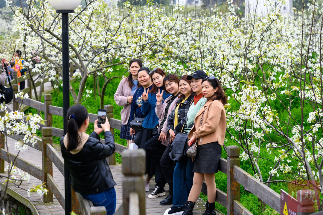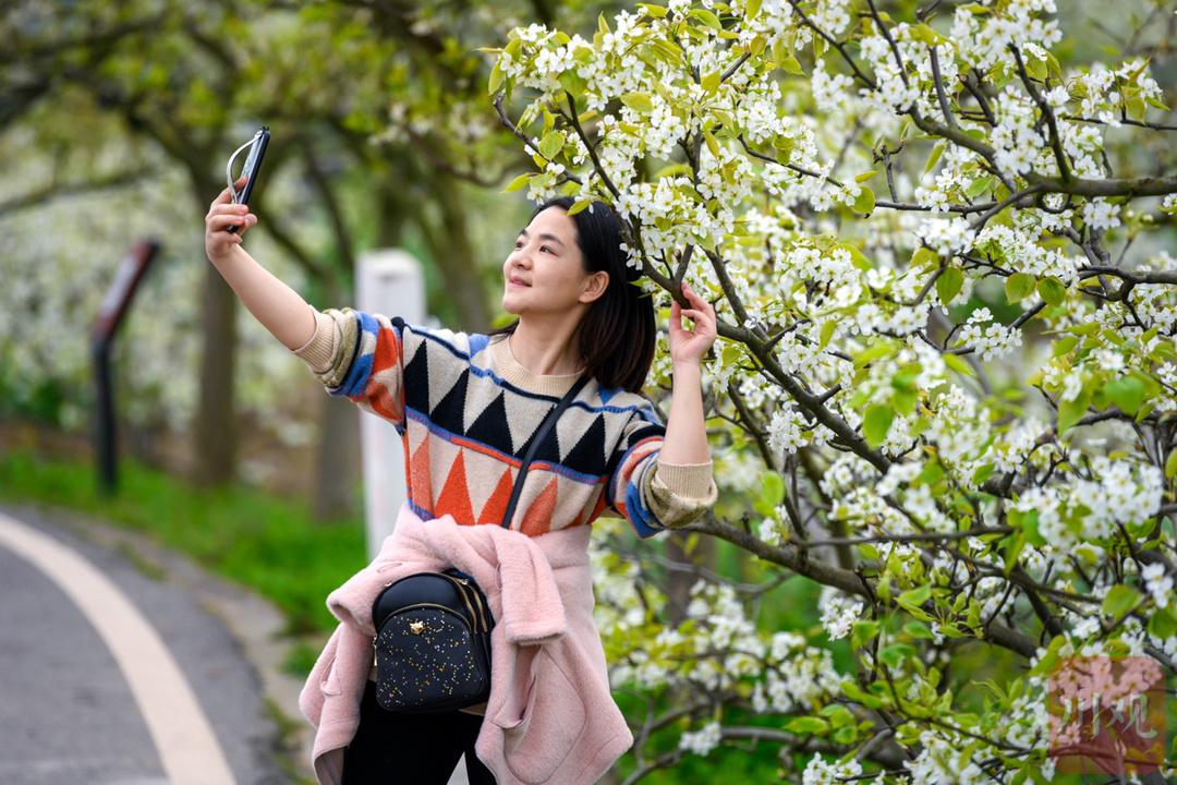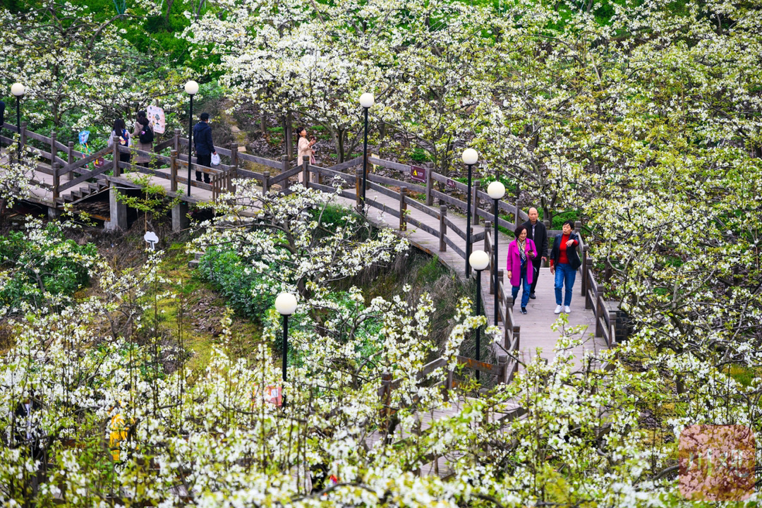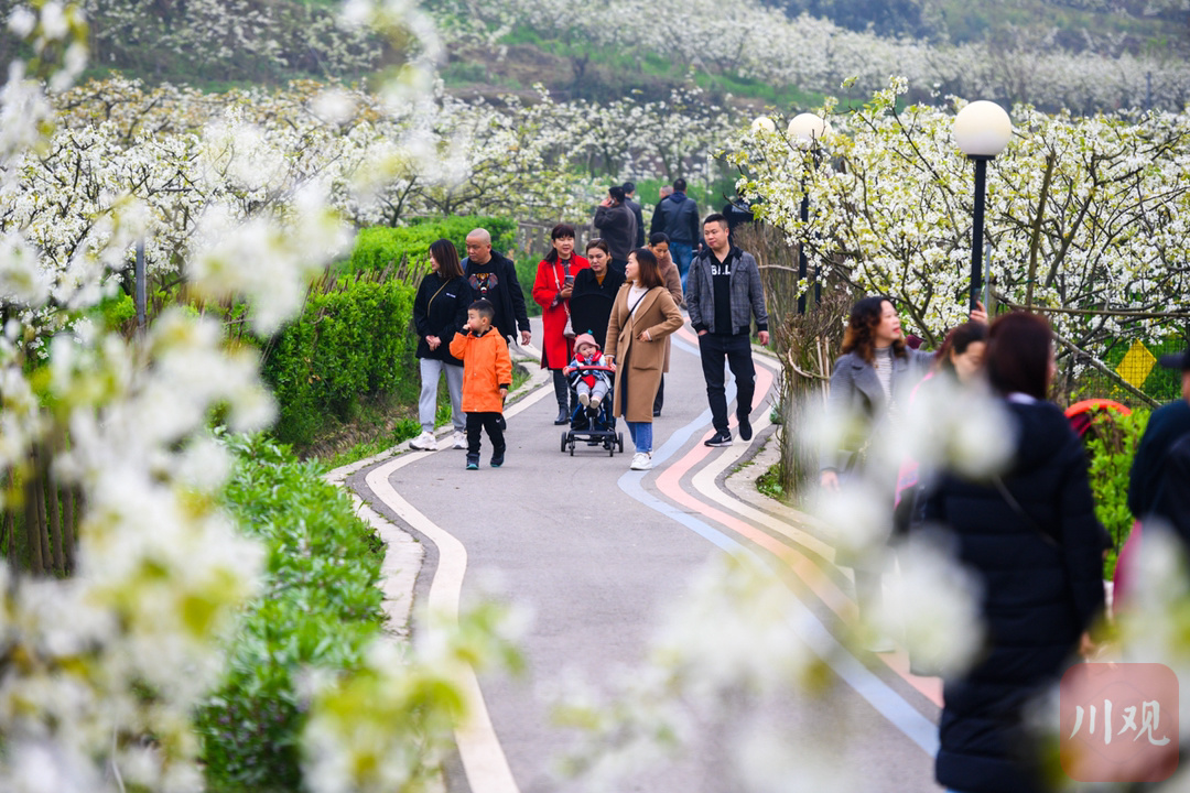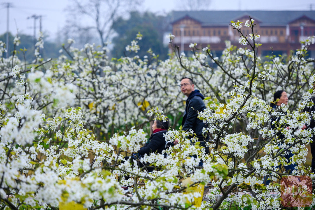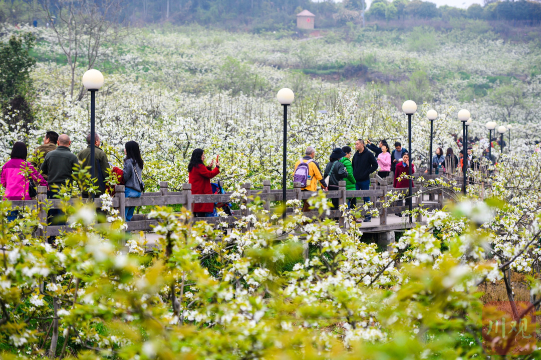 阳春三月的成都市彭州市葛仙山镇熙玉村,两千多亩梨花在和煦的春风里盛放,迎接着八方游客的赏玩。