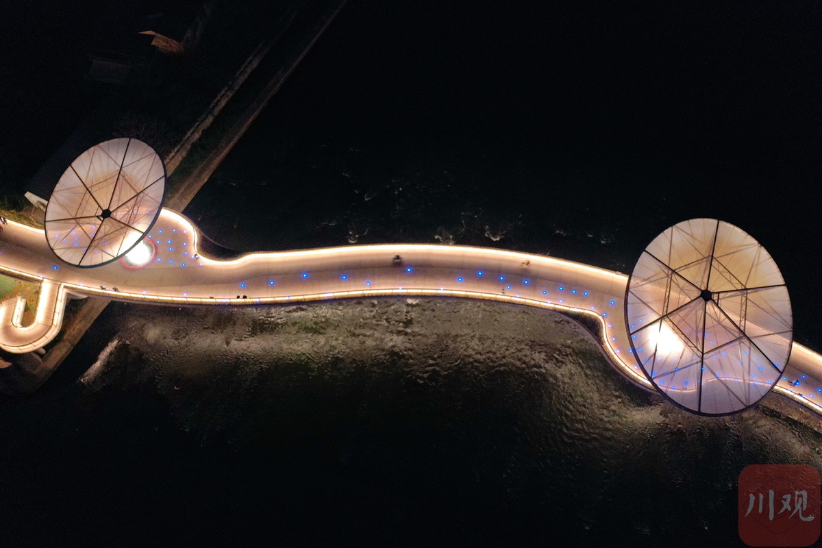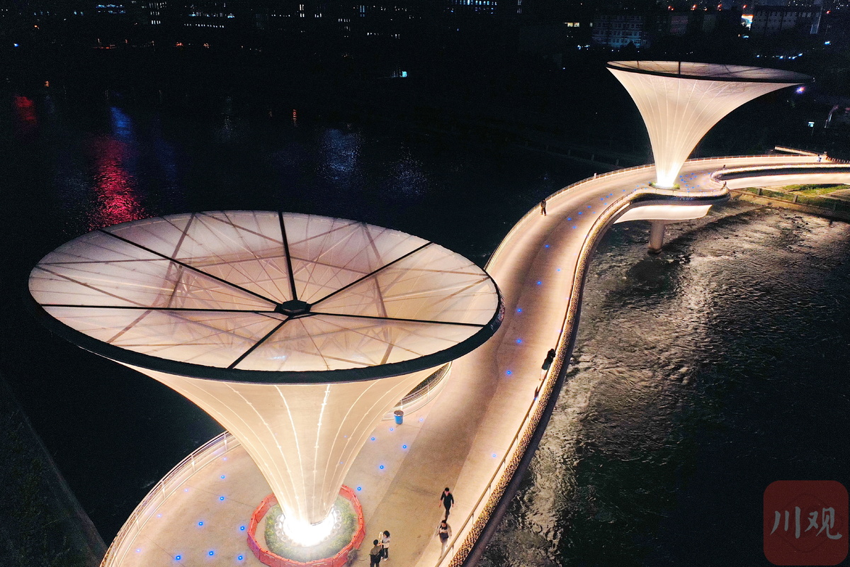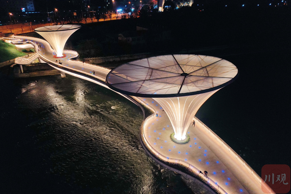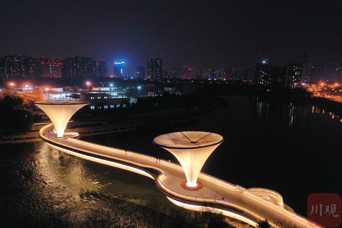 连日来,位于成都高新区老成仁路跨锦江人行天桥通行,独特的造型在夜色下迅速走红网络,成为市民新的打卡地。3月16日晚上,川观新闻记者来到位于成都高新区老成仁路跨锦江人行天桥看到,桥面同波光粼粼的江水相映成趣,桥上三三两两的行人一边散步一边欣赏沿途的锦江风光。