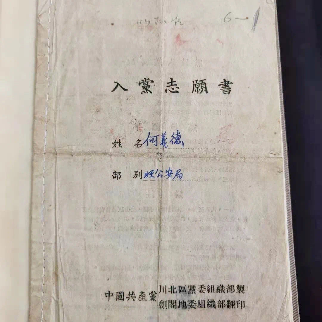 1951年,何老正式入党。在入党志愿书里,他这样写道:“共产主义为劳苦大众干事,是我们贫苦人的政党。我要永远跟着党走,为共产主义奋斗到底!”