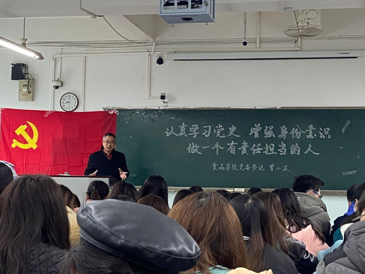 食品学院党委书记给学生上党课。